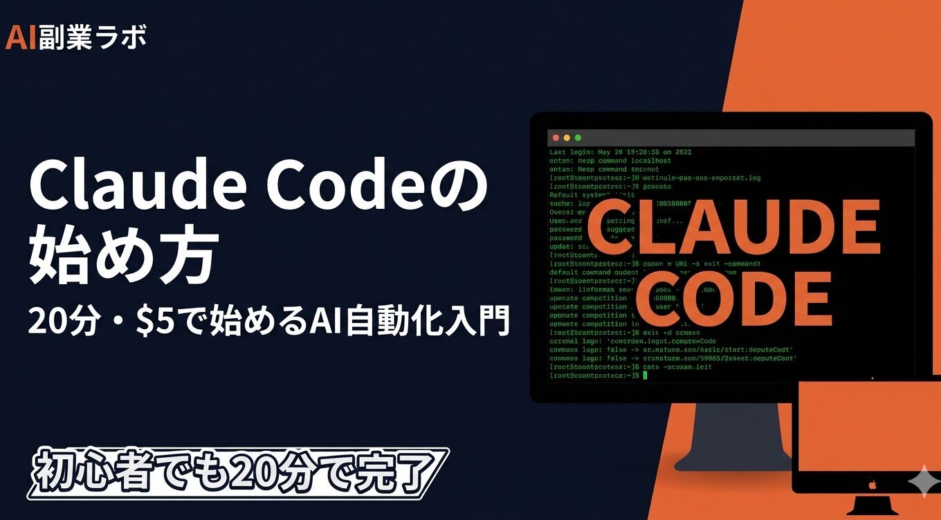 新着記事News 【2026年版】Claude Codeの始め方|初心者がMacで20分・$5から始めるAI自動化入門 2026.04.03 AI実験ラボ 【無料で遊べる】AIが作ったネオンゲーム「NEON DODGE」 2026.04.01 AIツール活用術 【2026年版】AI副業とは?初心者が月1万稼ぐまでの全手順 2026.04.01 AI副業入門 AIツール活用術 AI副業入門 AI実験ラボ 人気記事Popular Post 【無料で遊べる】AIが作ったネオンゲーム「NEON DODGE」 1 views 【2026年版】AI副業とは?初心者が月1万稼ぐまでの全手順 1 views Profile